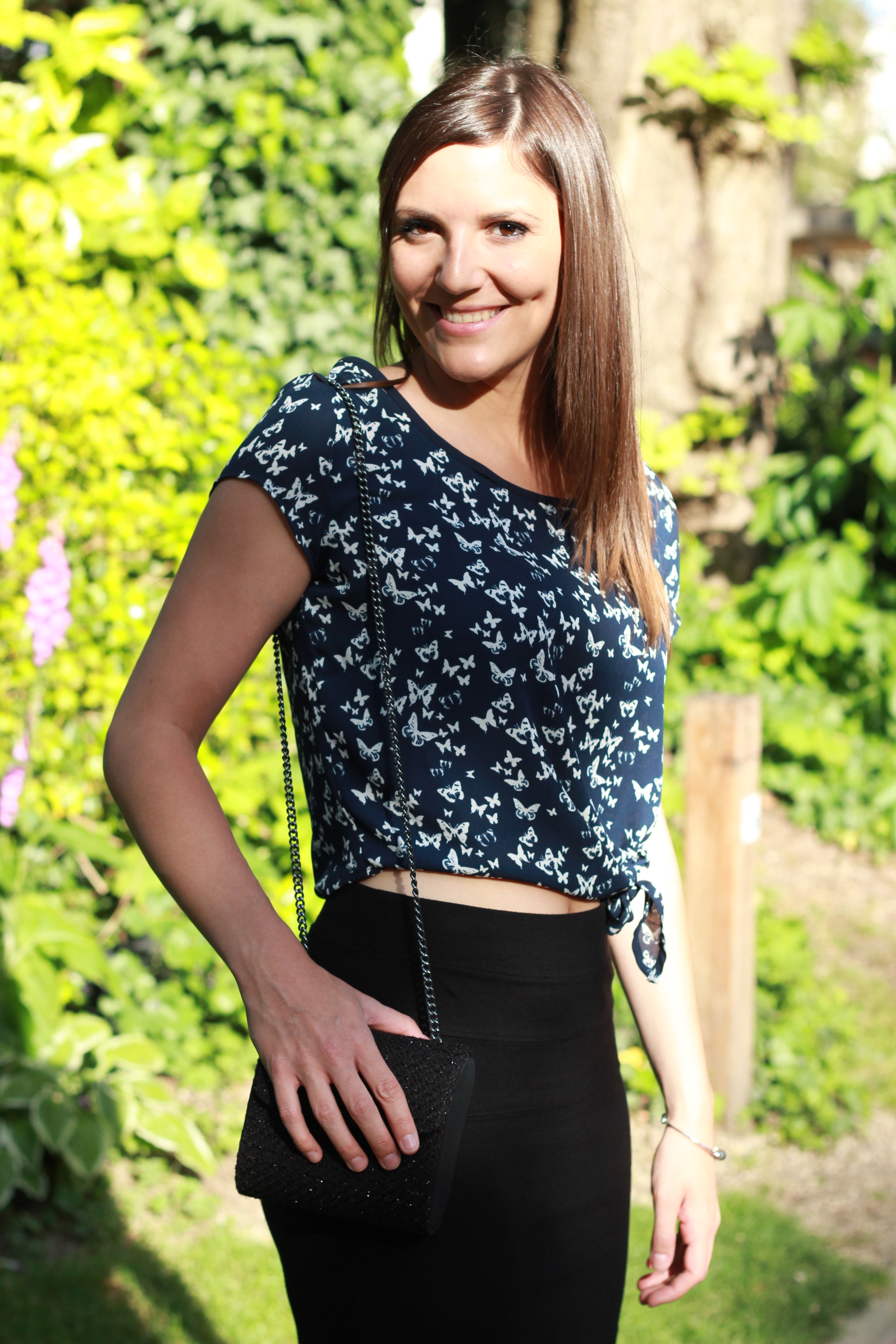 J’aime beaucoup l’association jupe et crop-top ! Puis avec les papillons il est vraiment top !